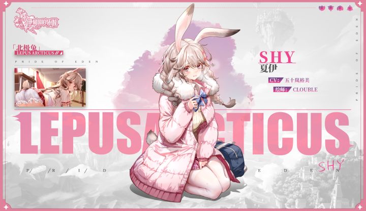 #伊甸园的骄傲# 新冒险者即将登场——【冒险者情报】夏伊(CV: 五十岚裕美 角色设计: @clouble )✦3月31日5:00起#伊甸园的骄傲# 游戏内将开启【勇气100% Bunny Bunny】限时招募,SSR冒险者「夏伊」出现概率占SSR冒险者出现概率的50%,欢迎Leader参与招募~▼该卡池每次抽卡将获得1点交换pt,累计获得180pt可兑换SSR冒险者「夏伊」!更多活动详情