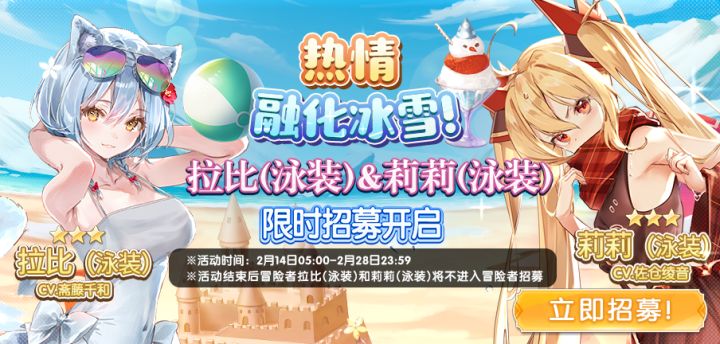 #伊甸园的骄傲# 【热情融化冰雪!】SSR冒险者「拉比(泳装)&莉莉(泳装)」限时招募今日开启——
