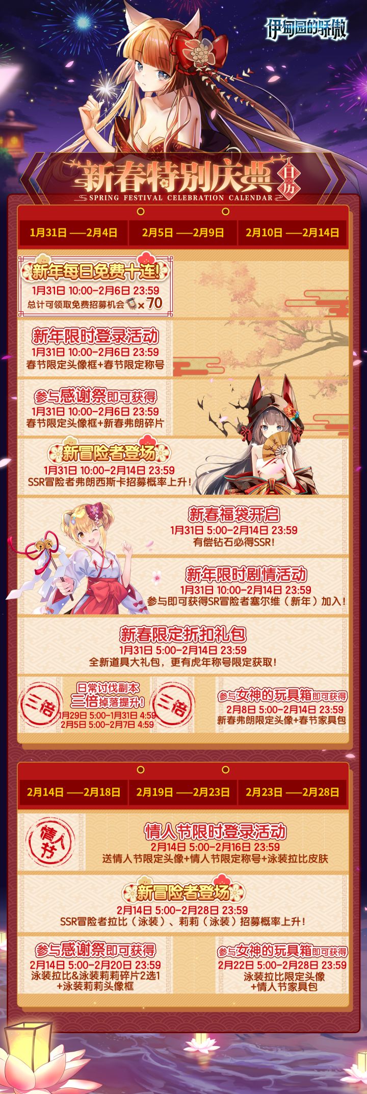 热闹的#伊甸园的骄傲# 新春活动即将开幕,在这里给Leader们送上活动日历哦,一起期待吧~❥(^_-)