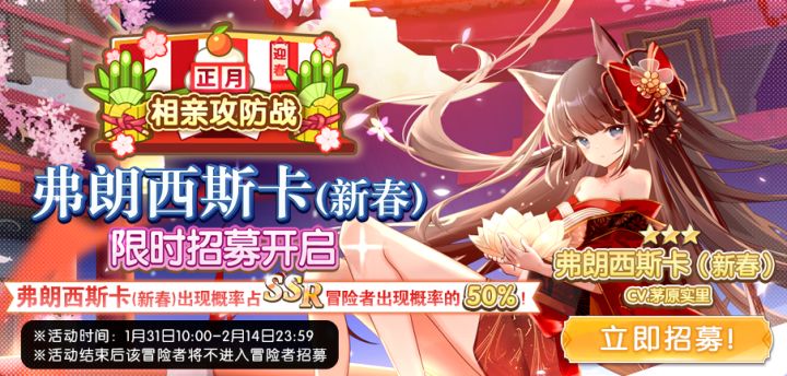 #伊甸园的骄傲# 【正月 相亲攻防战】SSR冒险者「弗朗西斯卡(新春)」限时招募今日开启——