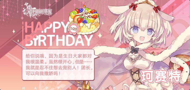 今天是珂赛特的生日哟!让我们一起为她送上生日祝福吧(*^▽^*)也请Leader登录游戏查收珂赛特的生日礼:绑定钻石*50