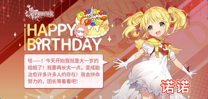 今天是天真努力的温泉看板娘--诺诺(CV:上田丽奈)的生日哟!让我们一起为她送上生日祝福吧(*^▽^*)也请Leader登录游戏查收诺诺的生日礼:绑定钻石*50