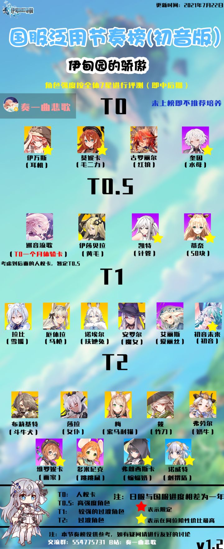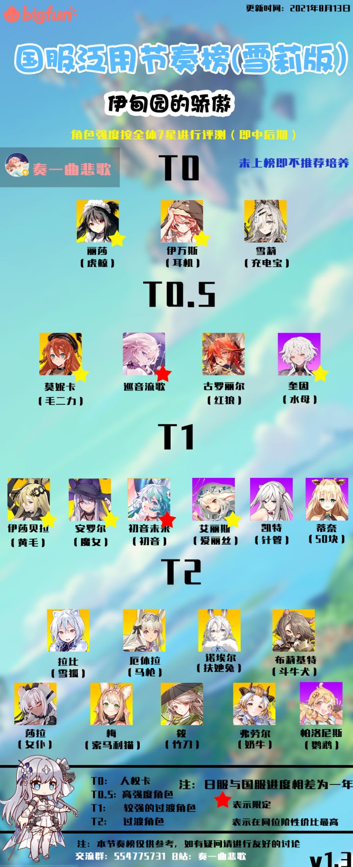 本节奏榜仅供国服开荒使用,陆续我们会陆续更新,想要参与攻略制作的小伙伴们欢迎加群554775731进行交流进群联系群主注:T0.5实际上大部分情况下与T1几乎没有差别,甚至不如T1,但SSR初始属性优秀,所以特别列出原地址https://www.bigfun.cn/post/1223452