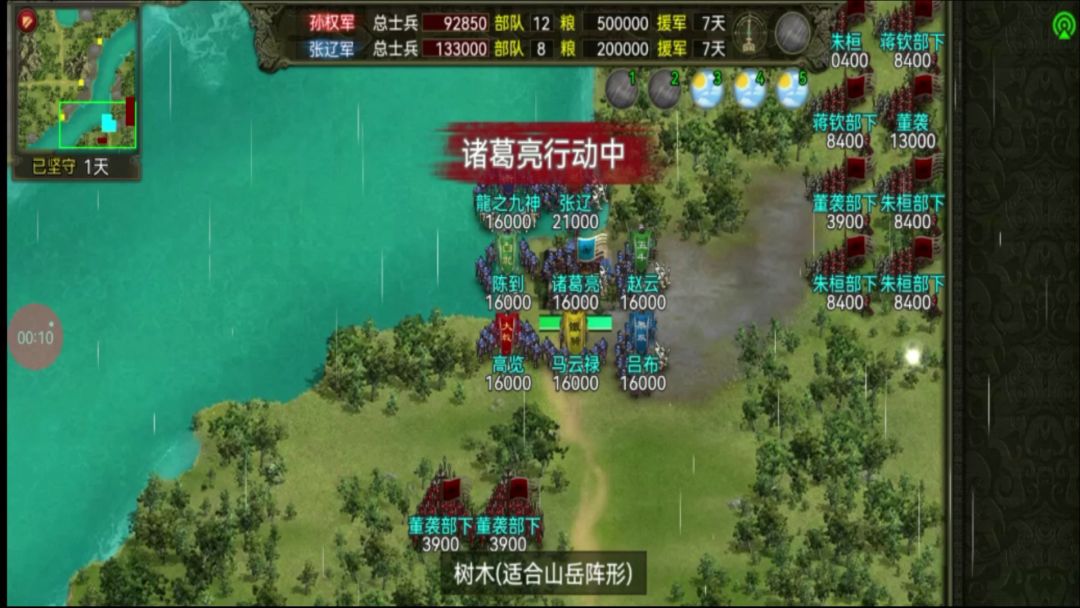如果近战玩不好,把其中几个近战换成射手也可以的,不过统领和锋失用得好未必会比连珠援射差,甚至更强。另外说句,合肥战役当前满分应该是52合0损,大部分玩家还是舍不得买黄天的,如果不用妖术要打出52合,对近战的理解就显得很重要了,包括其他战役的极限分,必须熟练运用近战,在兵符加持下,近战更容易突破输出上限。