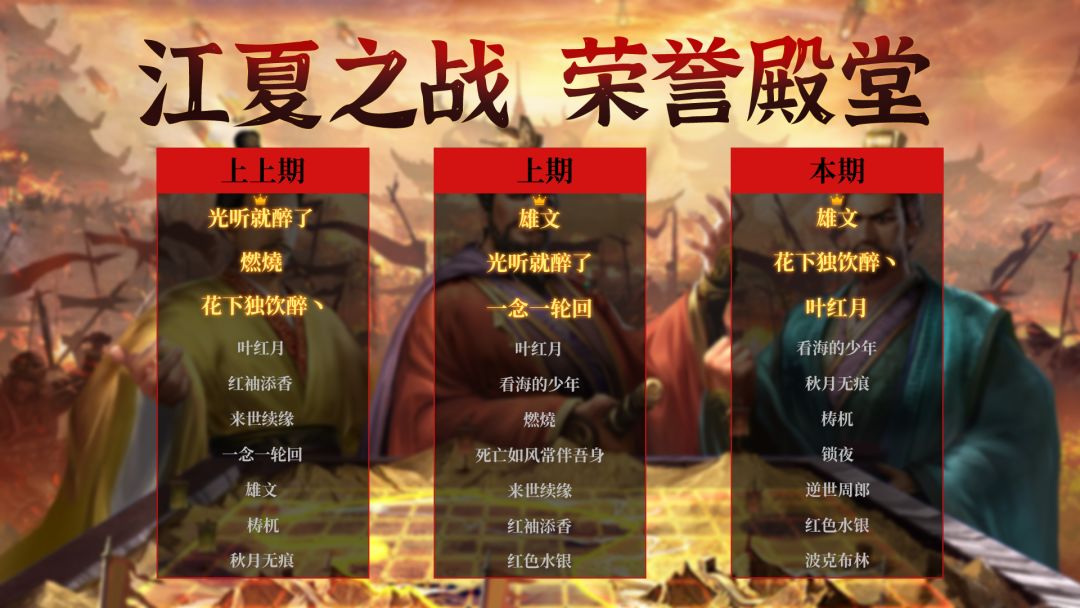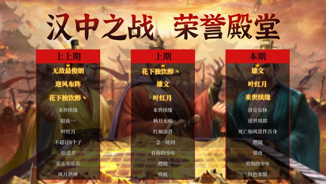 荣誉殿堂 | 汉中之战(新)排行榜!
