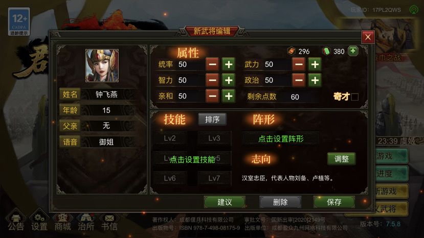 玩群雄4个多月了,刚开始玩也是一头雾水,白白浪费了好多宝贵时间和资源。现在把一些经验和得分享给刚开始玩的玩家们(老鸟可以划过)😂 首先需要要培养国色女武将(最好三个)这个很重要! 再点右边的奇才,可以全部属性加15点 这样一个国色女武将就完成了。 下一步攒金刀买下限,或者冲一波送下限的活动。 下限可以把原有的65属性全部加到75 这样一个完美的国色女武将就成型了。 其次就是升国器,尽量升满,国器最
