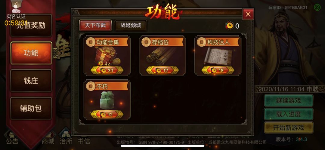 首先萌新入坑第一件事先在主界面左下角的 【设置👉账号👉绑定】 免得手机出问题了导致找不回存档,更重要的是能顺手把成就任务完成掉~ 【叮!玉符+10】 【玉符:主要用于剧本、战役、治所内各类商店的消费与自建武将培养消耗】 -------------------------- 正戏开始,对仅有的一个选项,【开始新游戏】发起进攻!这里建议还是打一下新手引导教程,既可以熟悉游戏,还可以