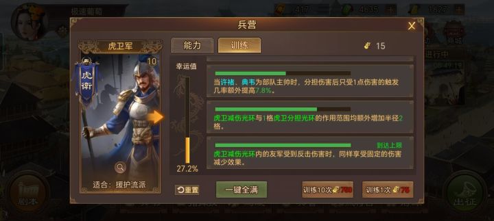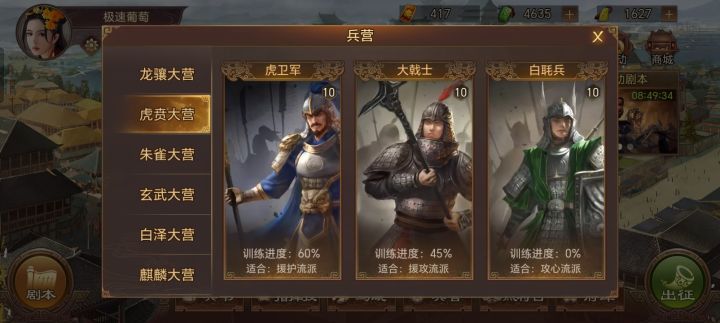 氪佬的话特种兵按照以下顺序训满,大戟→虎卫→五斗→白马→陷阵/先登→飞熊/枭姬/无当→丹阳/黄巾/无双