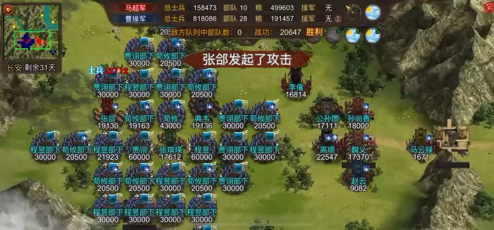 玩家:龙骧·负能量 解说:龙骧·祭酒陈琳 最后一波![表情_尬笑][表情_吃瓜]整体感觉这位负师傅比较随意啊 余31天 只有张琪瑛、张郃、典韦三个人贴脸等敌军,其他人都站后面。 开始想打张郃右边那个窝,结果差几千没敲掉😂程昱下面那个窝也没敲掉。好在伤害溢出足够多,无所谓的。 这盘麹义太猛了吧! 倒数第二个终于轮到了公孙瓒。 余30天 还剩18个敌军,好在血量都不多。 公孙瓒带走5个,张郃援攻还是差