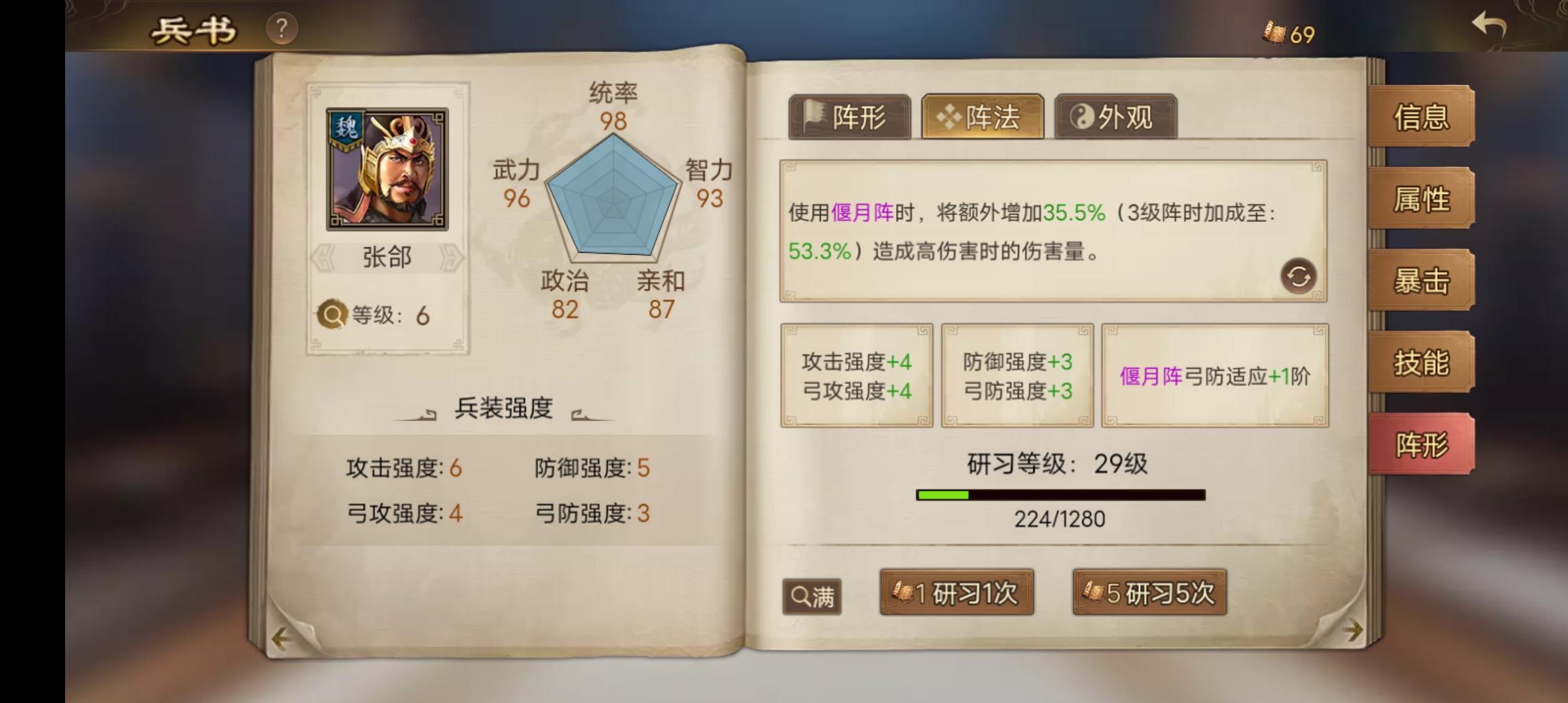 小意见:首先觉醒石在府库的位置能不能默认置顶?每次都要拖到最下面很烦人,其次能否降低甚至取消活动副本里面的属性培养时灵光一闪和技能替换的玉符消耗?还有每次的大乱斗自建武将不满15岁也会登场 搞得重子重孙们满世界乱跑,常用的开局自建核心武将要SL好久才能在自己手里……小心得:自建武将可以建几个初始属性28~31的,只需要3个初级灵光一闪觉醒后主属性可以达到162,计谋成功率和伤害提升蛮大,国色