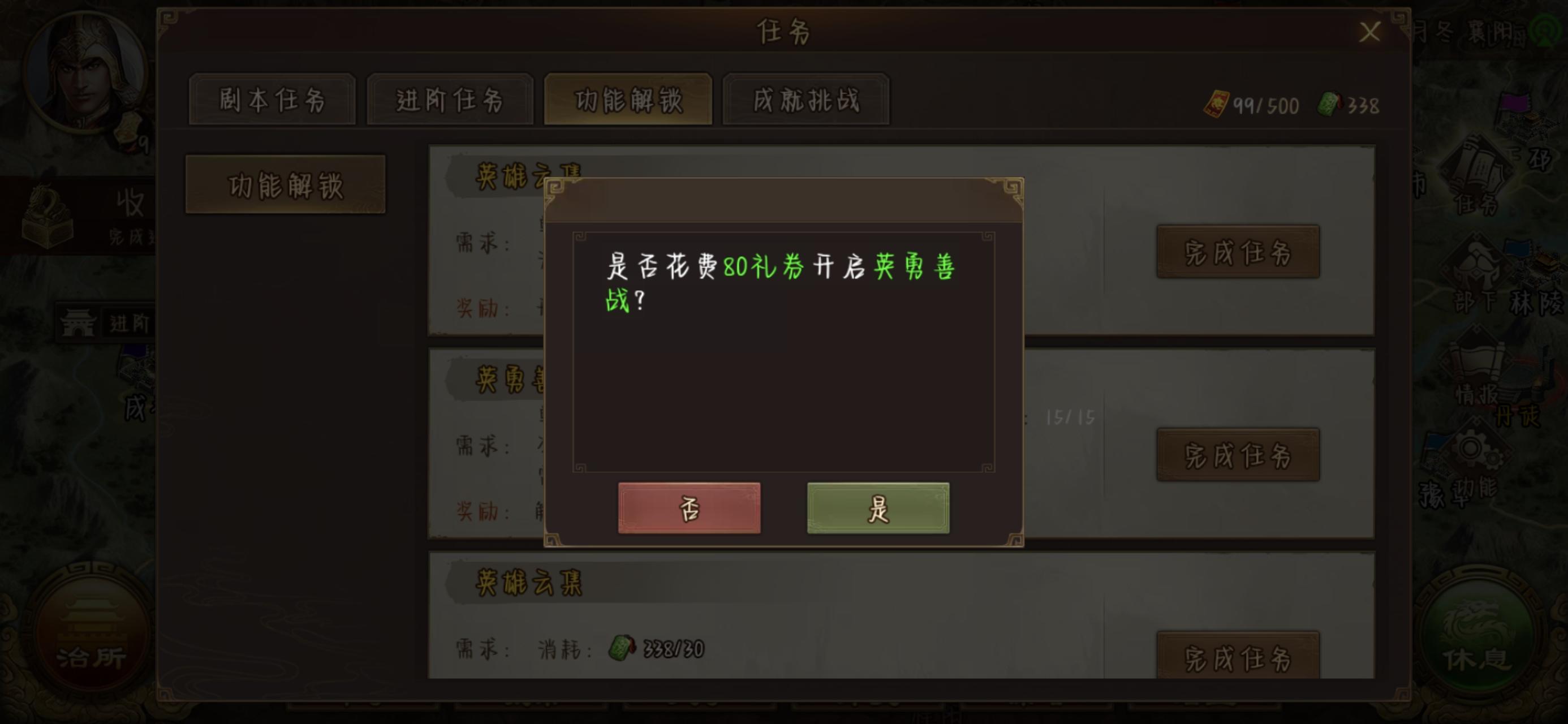 本人萌新一枚,元旦假期入的坑,到现在6天了,也是看着论坛大佬和自己的理解把自建女武将任务完成了,白嫖党,但广告太烦了,所以本人只能把房子贷了拿出来30元巨款开了个月卡首先是第一个任务,城防40w,这个可以在51剧本选辽东,自建一个99智的自建谋主,开局把黄忠刷过来,打到北海和邺,这样手里就有51,太史慈,黄忠,麴义5个连珠将,一直过到司马老贼和何屠夫城防