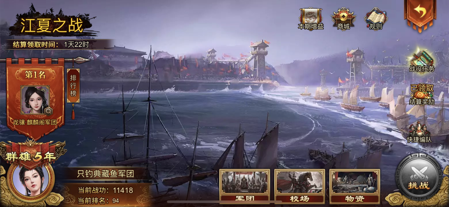 #群雄时代 ,11400多分,居然还拿到一个名次。以前12000多分都拿不到名次