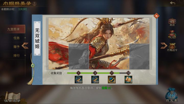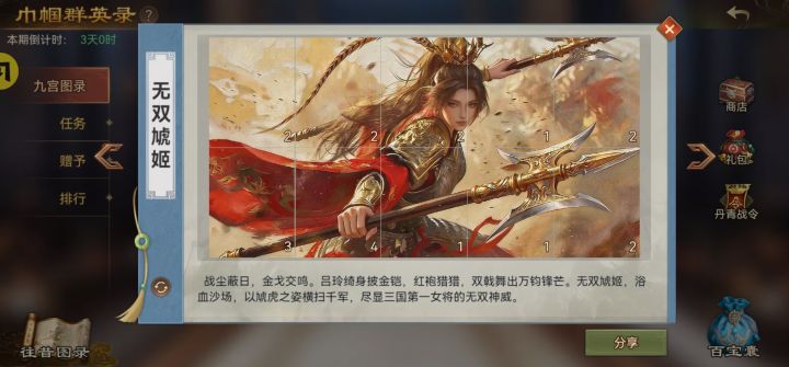 宝物技能唯一,新手前期会先开虎卫大戟等特种兵,在有6个以上主力特种兵满级满训的情况下,达到挑战