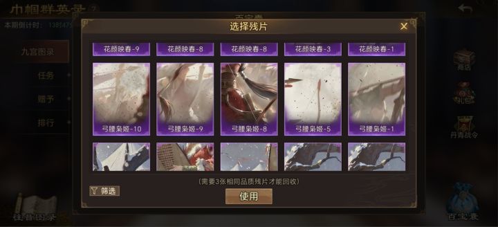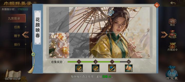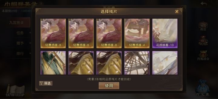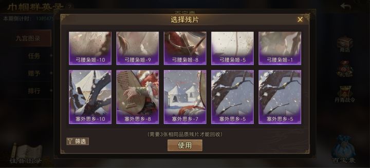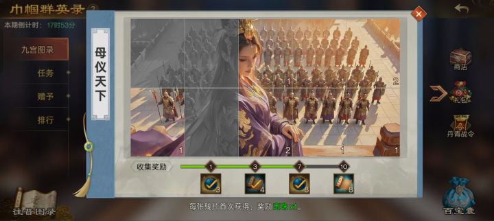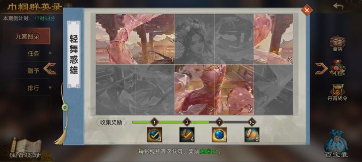 缺母仪1、8、10,轻舞3、6,塞外3、4。有的如图。 来自TapTap[ID:674852328 雷羅]
