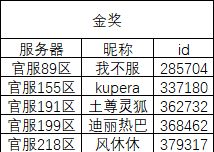 亲爱的萌主, 感谢诸位萌主的踊跃参与,崔莺莺攻略征集赛已经落幕,本次活动获奖的萌主名单如下: 【金奖】 【军师奖】 【干饭奖】 本次活动奖励如下: 无双攻略王金奖5名:勾玉x5000+高级祈福签*30 无双攻略军师奖若干:勾玉x2888+高级祈福签*15 无双攻略干饭奖(未获金奖和军师奖的所有符合要求的干饭人):勾玉x1888+高级祈福签 *8 金奖,军师奖和干饭奖励在今日(2022-11-08)