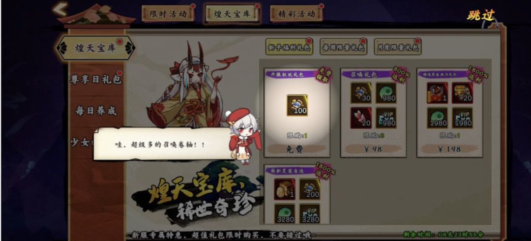 无双新手攻略~0氧微氧看过来哦~最新版本 让我们开一个新号看看~ 开局走流程,大概2分钟,走完最后一步黑皮(那个女生)说萌主初来乍到,有个消息告诉你,这时候就结束了,然后去限时活动领召唤卷轴,在月度,每周里面领取免费福利,唠叨一句,虽然无双充值项目多,但0氧可以实现 领完去召唤里面点10连召唤。20抽保底上级 50保底四系 然后去“英雄”里面图鉴,点击左下角一键领取,领取勾玉 再看看英雄主页 里面