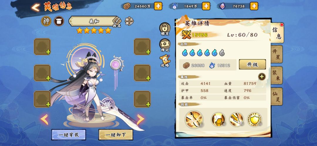 萌新出山!后附微氪攻略~先来看看羲和技能 经过一轮官方加强,这“绝对的核心”终于可以说是当之无愧了,攻守兼备,氪了不亏!个人推荐氪金向阵容:羲和+祝融+高渐离+诸葛亮+双杨娥 既然这么强了,搭配意思意思就行。自选神宝石很难得,能开到属性不那么离谱的神宝石凑合一下也得了 法宝更推荐用加速度的,没有专属神器没事,还是用猴子的万金油神器加速度(逢年过节可以用250抽高级祈福回想换) 家具随意2+2+2配