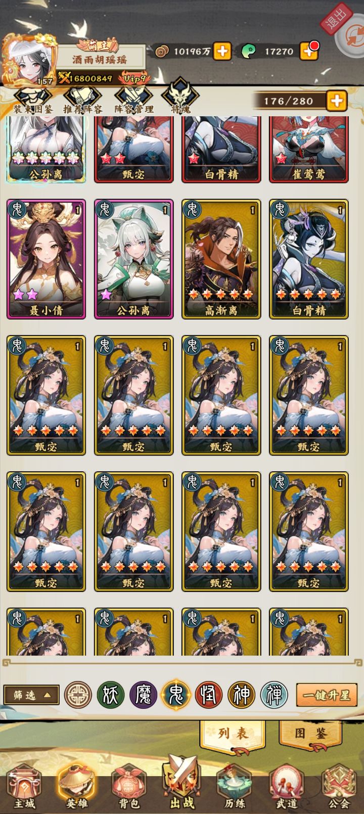 一个刚刚开始囤资源的萌新(玩的一塌糊涂,资源全部浪费了)1.甄宓本体已攒够只差狗粮直接搞满2.心愿石还差两轮才可以拉满梭哈3.英雄进阶石已攒够(可惜暂无用武之地)4.阵营召唤还是比较欧的(可惜T0英雄出的不多)