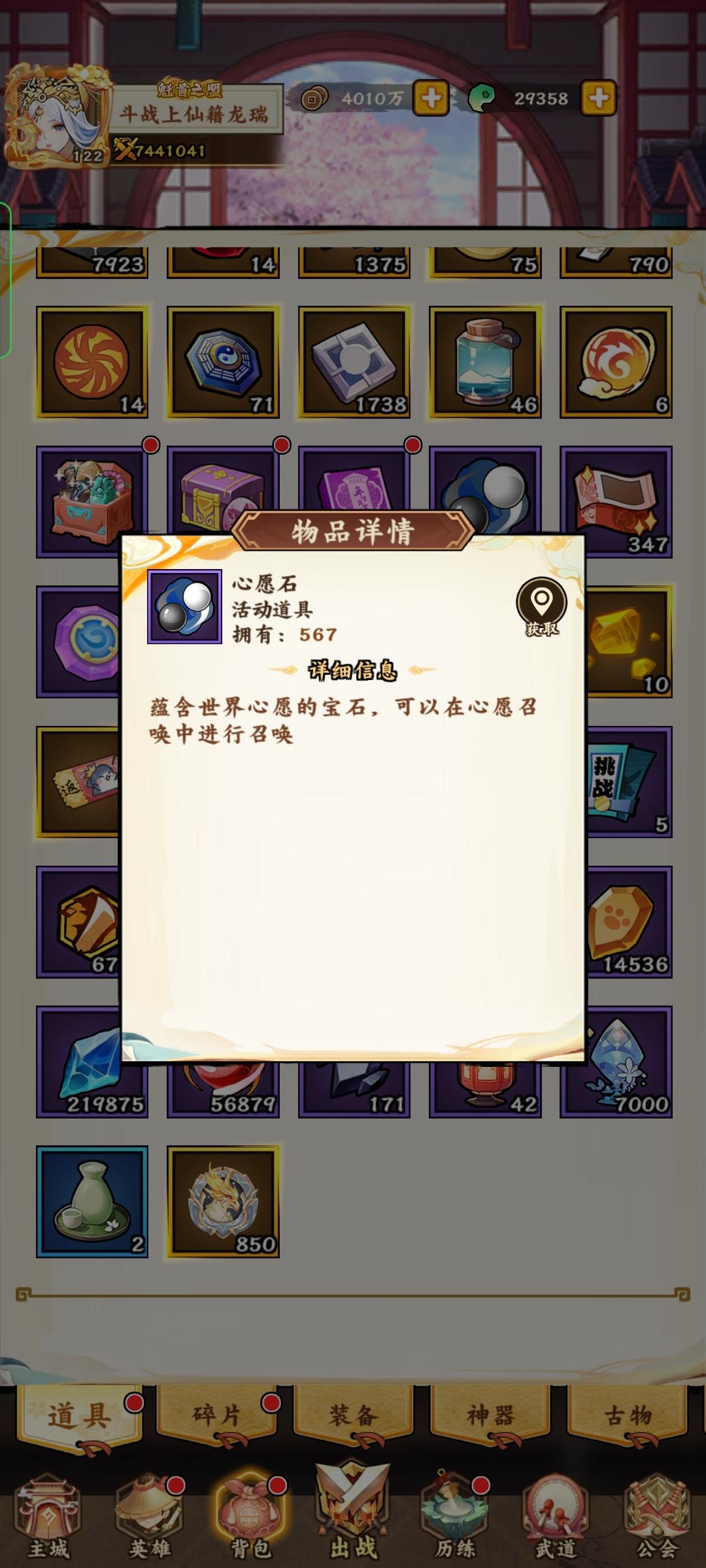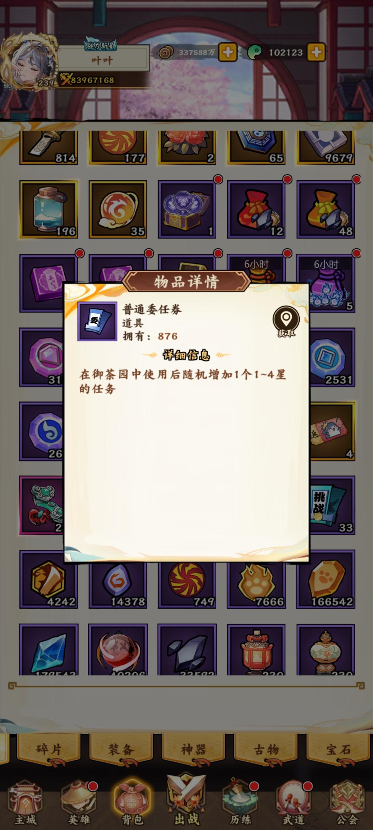最骄傲(贫穷)的囤货1.心愿石完全不够梭哈(悲)2.876张普通委托券,希望全开能出876个7星委托可惜不行(幻想中)3.完全不够看的碎片4.上古时代的宝贝