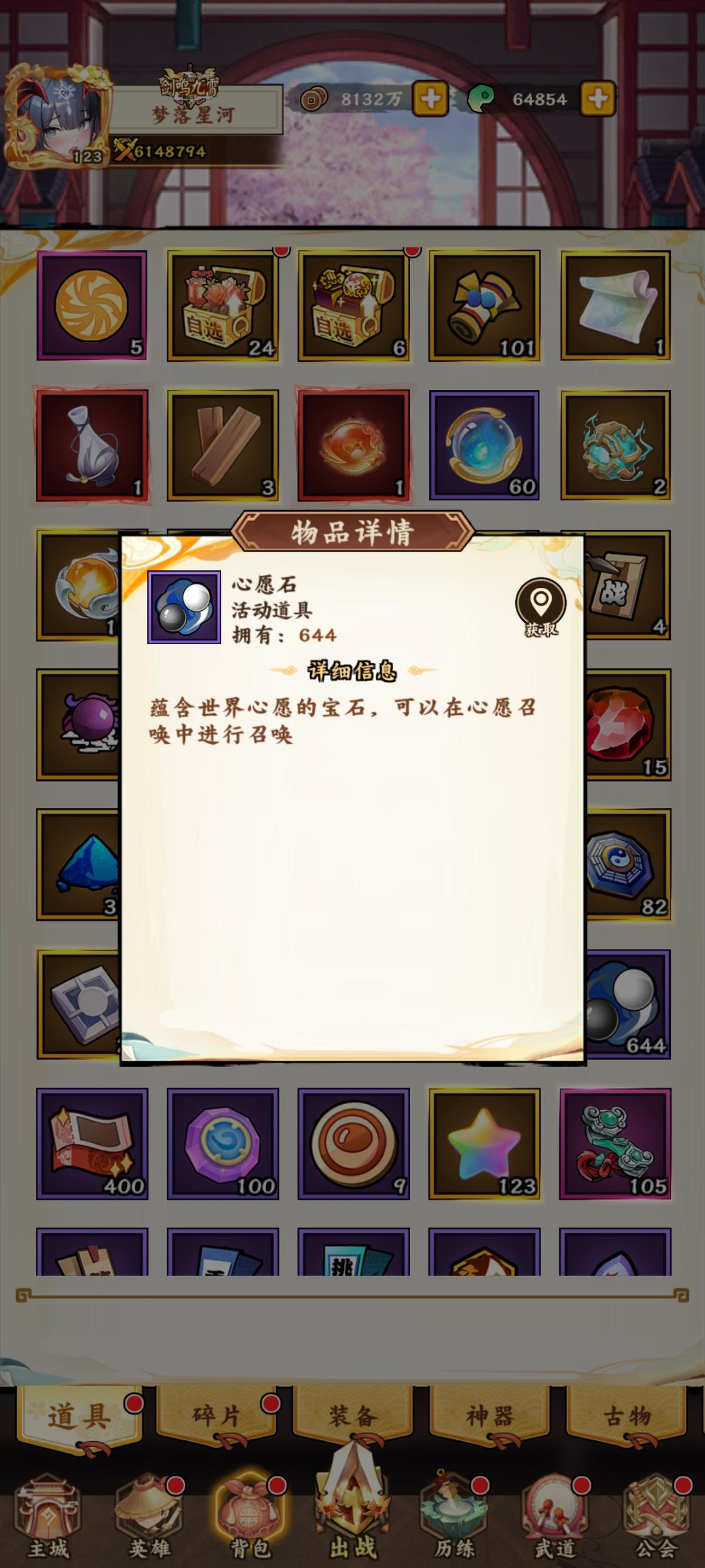 氪一轮抵过轮替活动好几轮,主要你摇骰子还能得大量的资源,运气好几十个红券星辰沙:神器=星宿神禅宝石>星宿宠物箱子(毕竟战令98一个,神器要396)>核心玄珠>洗髓丹金沙兑换:【第一梯队】粘剂/灵玉核心/星宿秘宝/传说古物精选/星宿宝石自选理由:以上物品都是后期战力刚需,特别是「古物」和「粘剂」,正神古物的提升是巨大的,粘剂是家具合成的重要材料,难获得,后期一套仙尊家具可以提1200w战力;