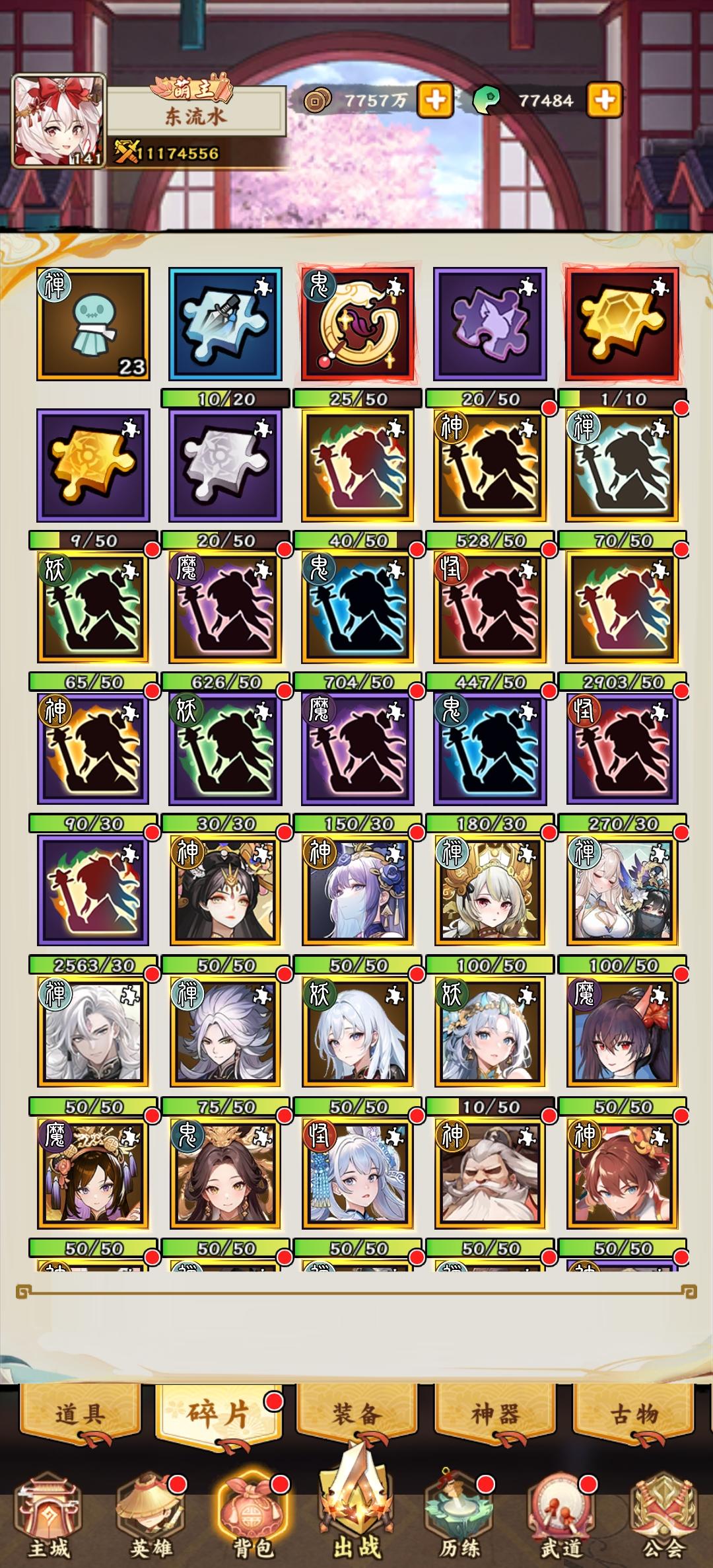 正儿八经从横版追到竖版陪伴竖版从第一天到现在这个号是我第二个号,断断续续玩了半年左右目前正在追赶几位大佬的步伐现在已经做满了三把金曜+一把速度神器剩下两个打算先做一个神龙,剩下再看新的强势英雄适配性现在打算把太极拉到正神,把奶妈练好,估计马上就要出超级大奶了慢慢来也许一个月后我就7kw了,超越沐佬,成为全服战力第三,全服务器战力第五!!!