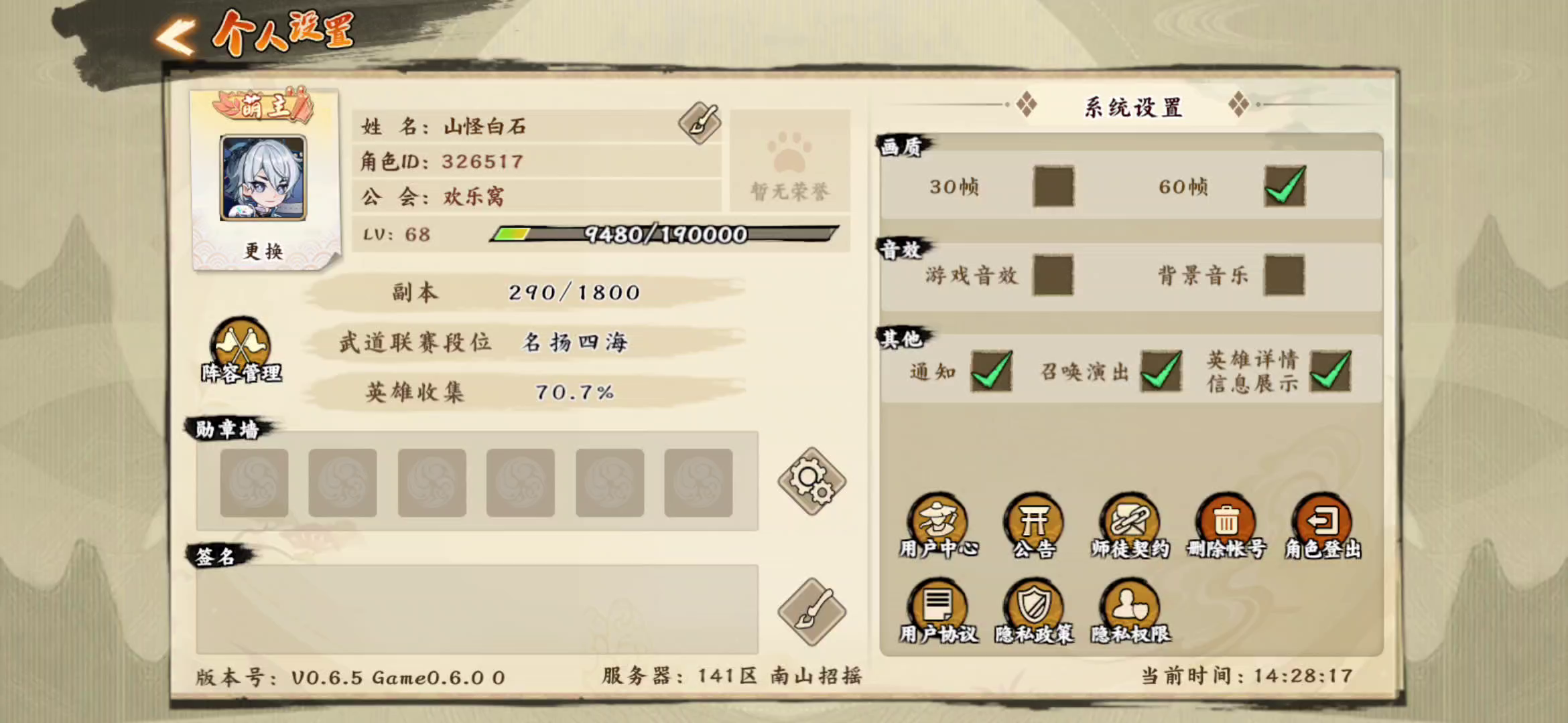 #无双萌将投食活动#官服渠道141服 ID326517 角色名:山怪白石