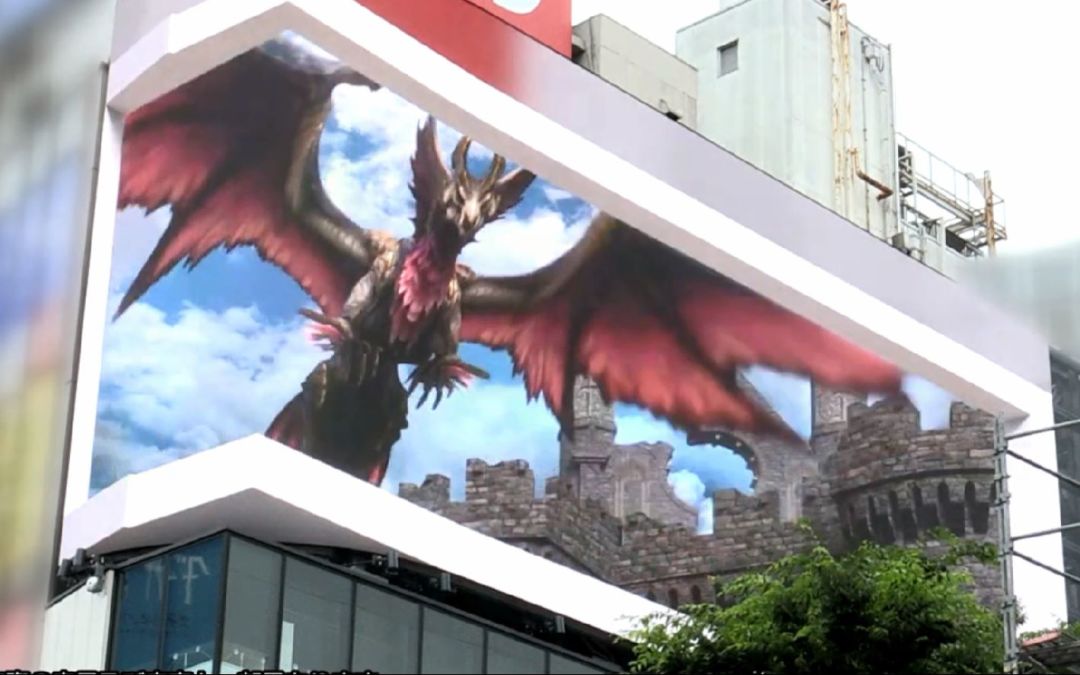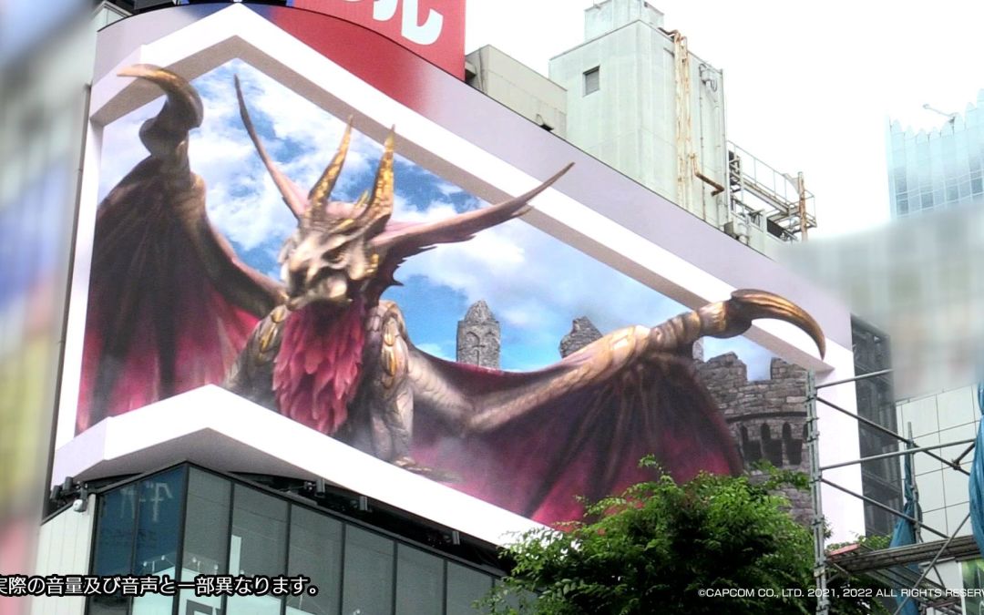 来源:Capcom 《怪物猎人崛起 曙光》中新登场的爵银龙在东京新宿3D立体广告屏中现身