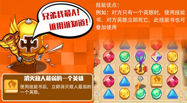 艾克特的儿子。童年时代跟亚瑟王生活在一起。亚瑟登基后,任命他为宫廷执事长,一生辅佐王政。是一位心地善良而富有幽默感的人。凯:亚瑟的义兄,圆桌骑士第三席技能:刺杀技能优点:例:对方只有一个英雄时,使用技能书,对方英雄立即死亡,此技能书也可叠加使用,如同时使用2本技能书,立即消灭对方最弱的两个英雄,以此类推。iOS版已上线——《消除英雄~逆转战记》 !欢迎加入《消除英雄~逆转战记》QQ群