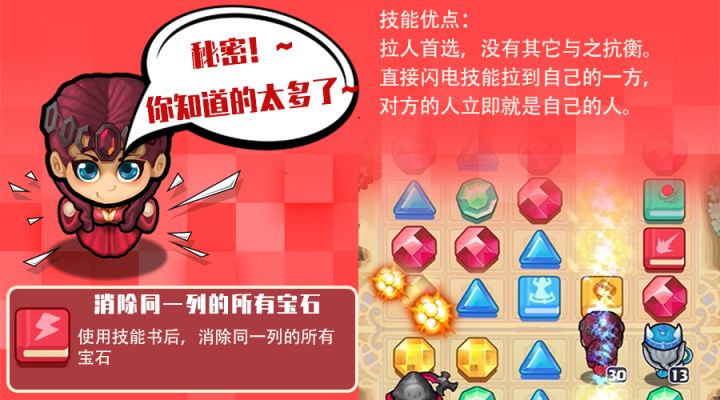 红袍女巫:坚定的信仰赋予她光明的力量,预言未来的能力让她格外神秘。技能:闪电使用技能书后,消除同一列的所有宝石技能优点:拉人首选,没有其它与之抗衡。直接闪电技能拉到自己的一方,对方的人立即就是自己的人。iOS版已上线——《消除英雄~逆转战记》 !欢迎加入《消除英雄~逆转战记》QQ群使用微信扫一扫立刻游戏!
