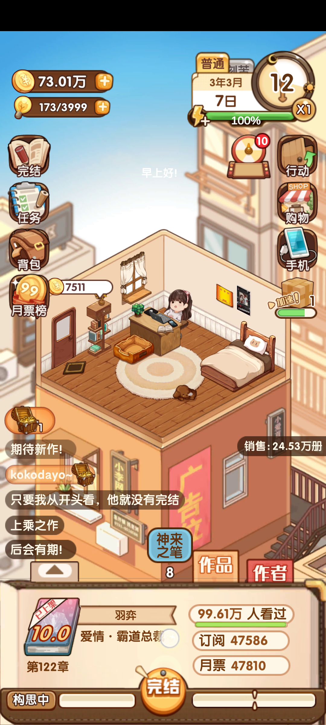 bug不知道什么原因完结不了,底下那个完结按钮卡主了没反应,点进去书籍,返回不了,网络没问题