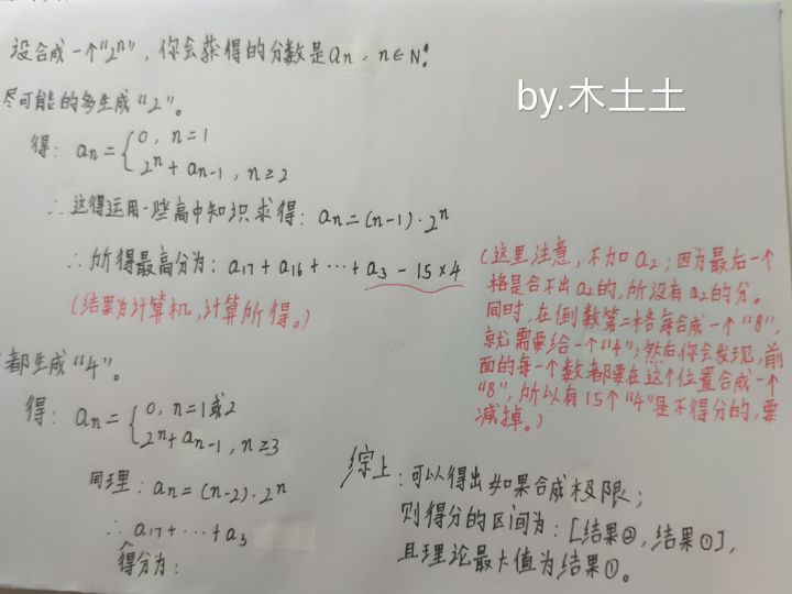 #我算出来2048的理论极限值!!! 从计算结果上来看,如果把2048玩到极限,那么它的得分应该是在[3668992,3932100]这个区间内,图例1也符合这个结果。 所以如计算无误的话,那理论上的最高分就应该是3932100。 希望官方不用出来打我的脸🙏🙏🙏 (如计算有误,反馈删帖,谢谢)