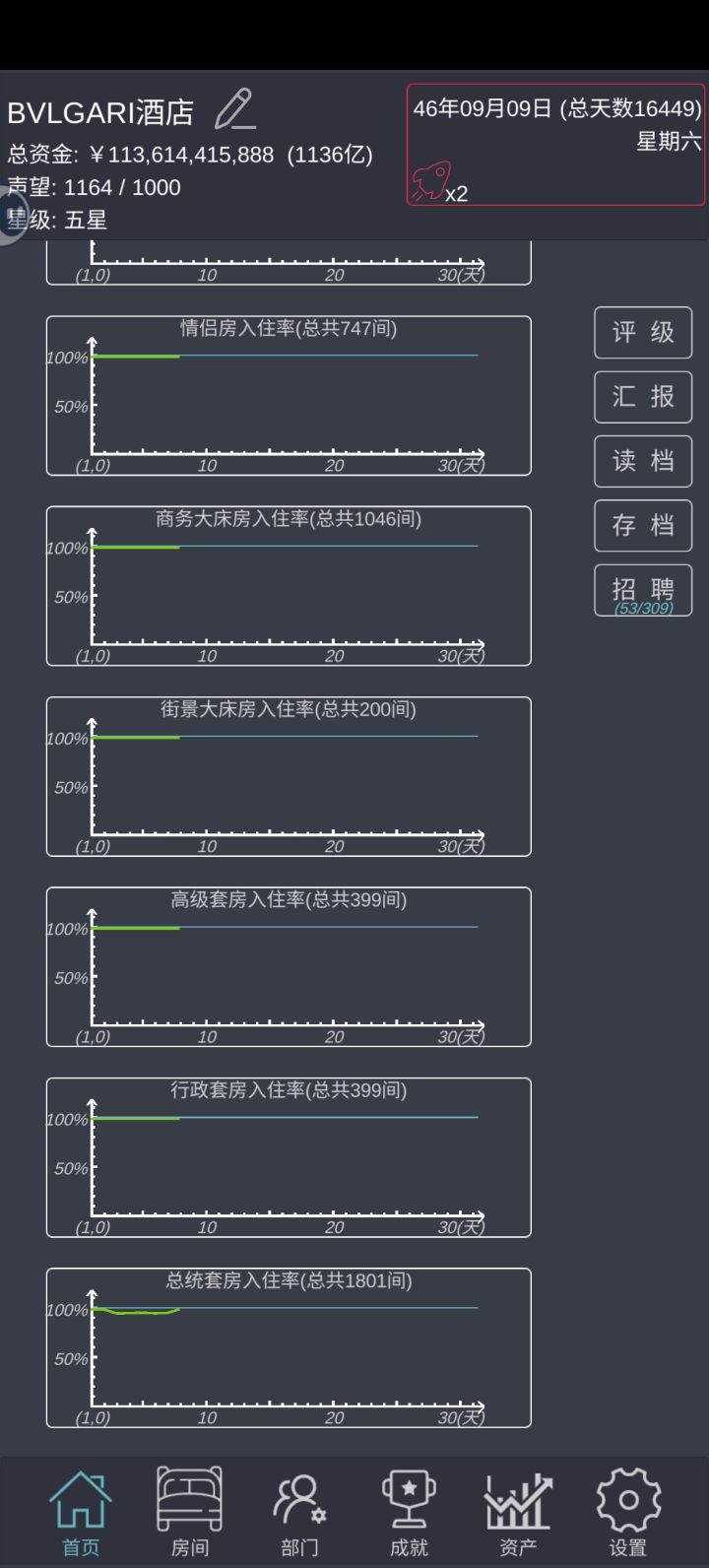 结尾篇,因为总统房真的是到了5星才真的有收益,前期真的不要开,亏到哭,另外餐饮部和康乐部的人劲量控制不要太多,真就一群混子,难到哭😭。