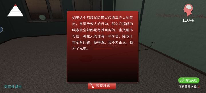 第二层梦境闪瞎眼……最后99%的时候还差一个符号,搞了半天原来在小桌子那面墙上,进入实验,然后看着那面墙,一闪而过,需要快点点击,不然就没了