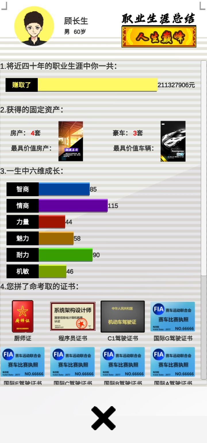 ③证件与学历,前者很多看起来很nb的证件,但实际没什么用,也是加一点点属性,还不如看广告。后者关联了求职条件,并无太多特别。
