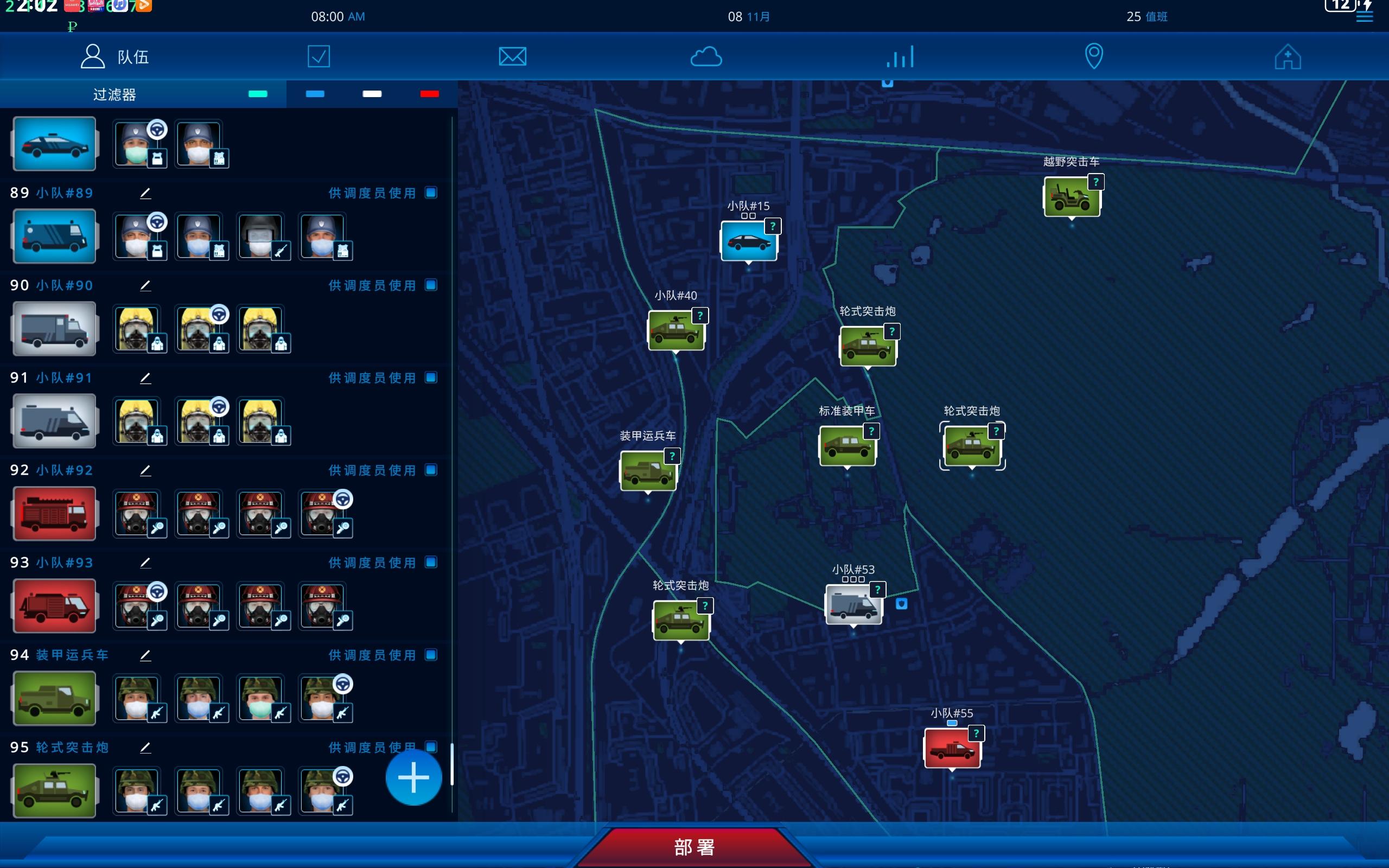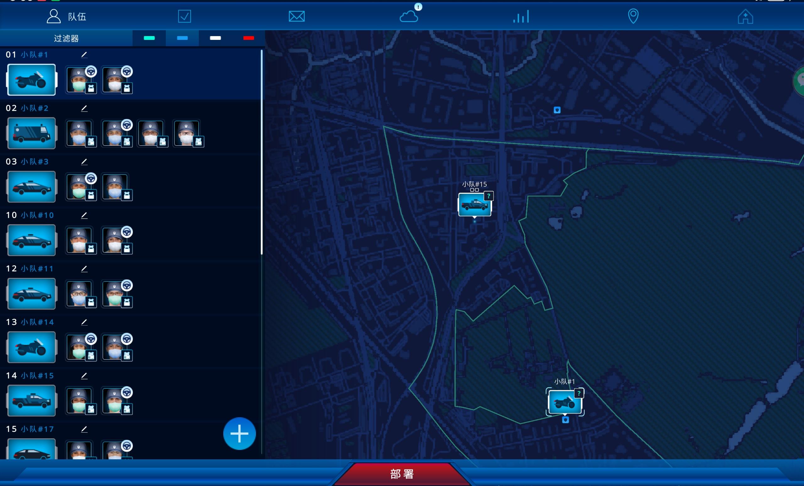 之前就这之前就这块发生过两次银行抢劫案,然后因为当时警力不足,而且其他地方支援也慢,所以就导致每次都在这块亏了一大笔声望和二到三只警察小队,并且还是这个事件击败了所有到达的小队,之后甚至还全身而退,扣了一大笔声望,所以说我简单在这里部署了一下,更多的高级装备 (一辆越野突击车,两辆装甲运兵车,两辆悍马运兵车,三辆悍马突击车) 但是就改进一下小队部署之后,整个地图的几次值班之后都没有发生银行抢劫,也