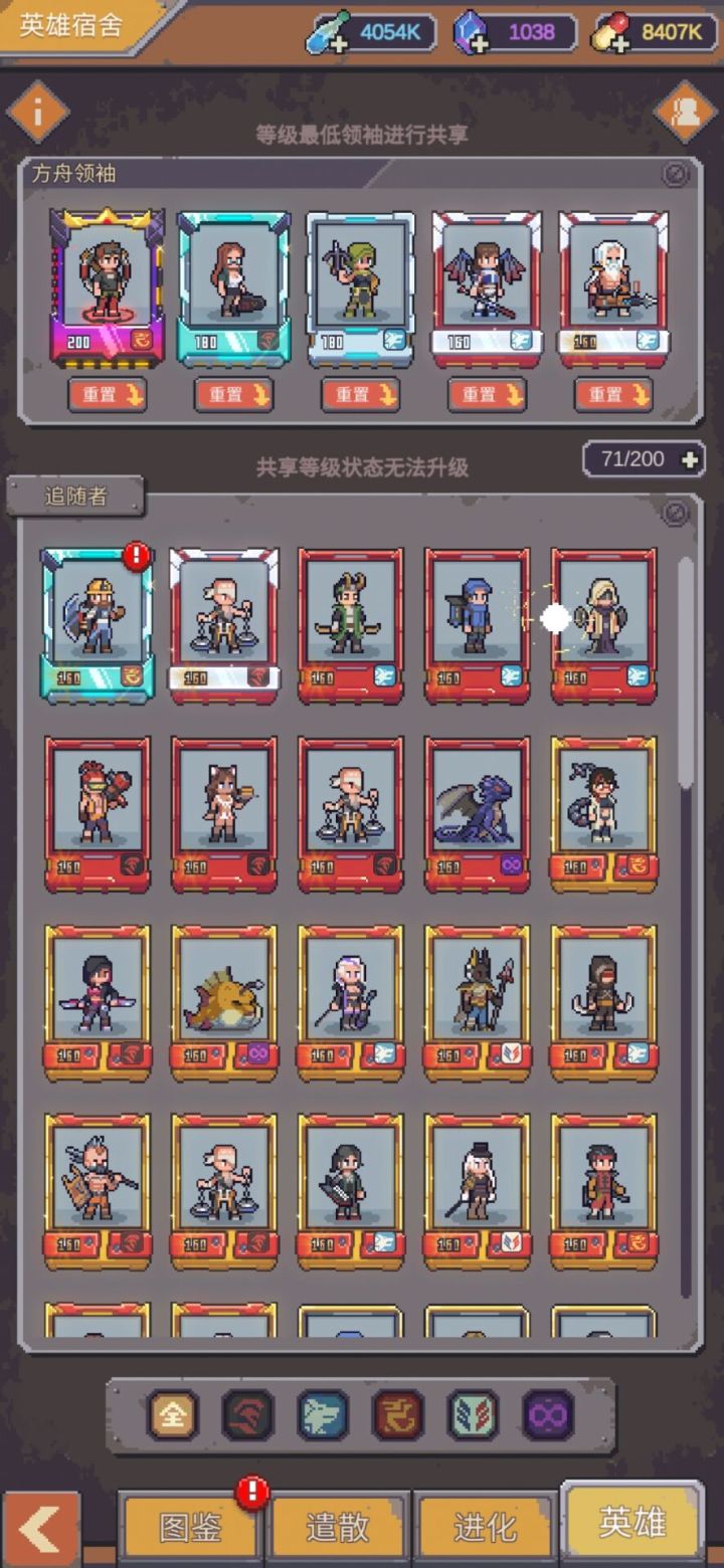 流浪方舟是一款,弹珠、抽卡、像素、放置、挂机类型游戏话不多说直入正题,打开游戏右上角有个带问号❓的飞行器打开,具体内容都显示出来了👇🏻我们先抽卡,十连十连的抽会出现抽得到普通英雄遣散获得素材稀有、超稀有英雄用来升级在主线任务通过1-10关开启自动打