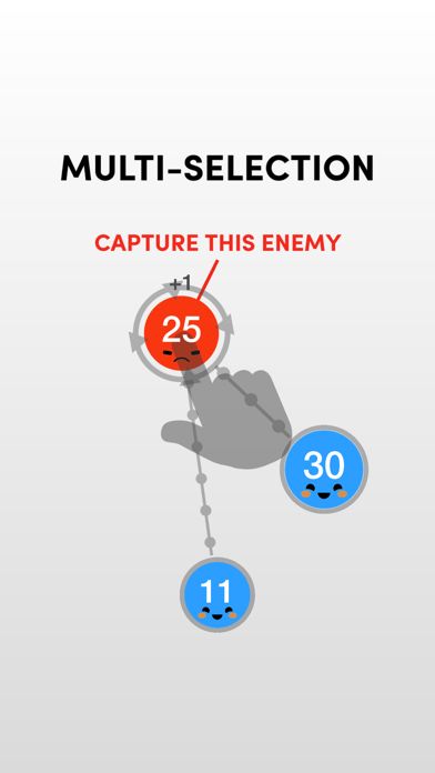 Catch all your opponents, cell by cell. Always starting with the blue one, capture the others by swiping the finger from cell to cell.