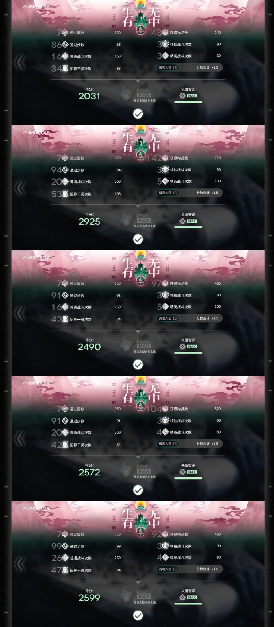 9层_1.37 19层_6.29 29层_10.33 39层_13.10 49层_15.16 金币秘籍+闪避圆满。条件刷成锤子+佛珠,佛珠数量无所谓,锤子越少上限越高。开局刷666金币或者佛珠。 战斗配置:9层1锤子,19层出圆满,29层15锤子,39层24锤子+10无量(差两三个也无所谓),49层35锤子+10无量+10天机+生尸、袈裟合计9。生尸和袈裟是打蚊道人用的,不能太少。 视频51