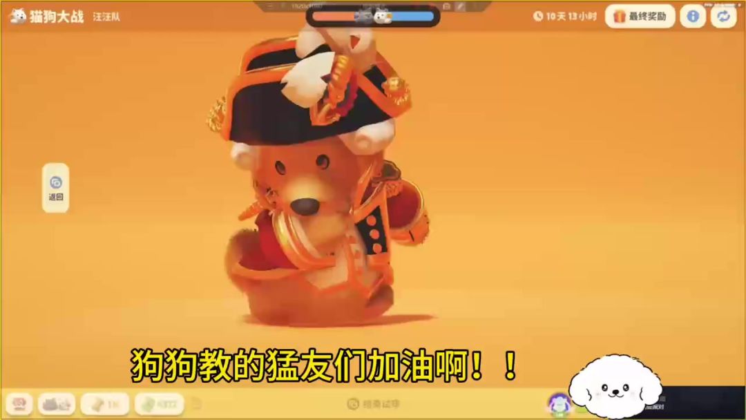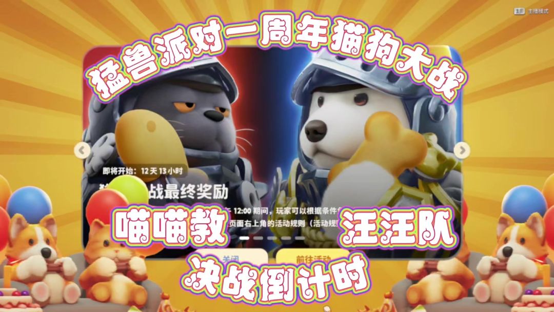 猛兽派对丨猫狗大战倒计时11天 今天看游戏内的对抗条趋势 喵喵教和汪汪队势均力敌 你一拳,我一拳,喵喵教绝对能领先 喵喵教加油,喵喵教必胜 为了最终的奖励,一起加油