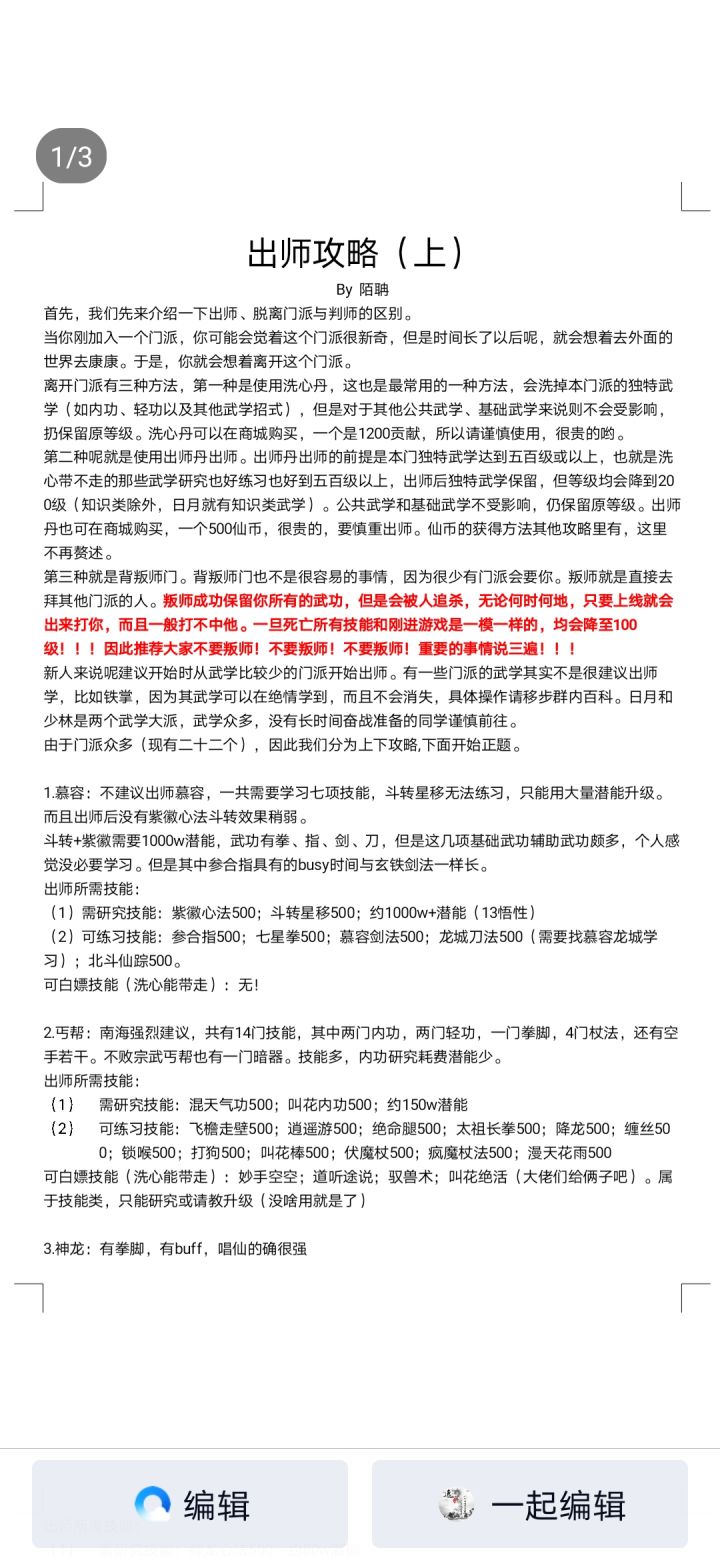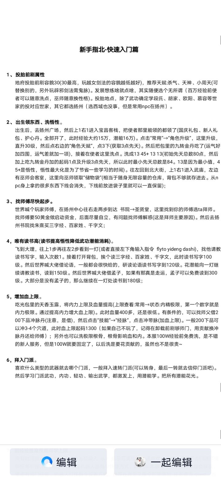 这个游戏是我在文字游戏中玩的最久的一个,自由度很高,也很肝,里面的人也很好,其实如果不是因为功法冲突的话,我可能现在也会一直玩下去,开服几天的时候我就开始玩了,只能这么说,我的账号经历了太多了,我的账号从学不正变成了空学,成为了全服第一个叛师的人,我想可能也是最后一个了吧!黄大侠一招把我打回解放前,新人可能不知道,但是玩的长一点的绝对知道我这个事情,最后那个账号被我放弃了,后来我又开了一个账号,