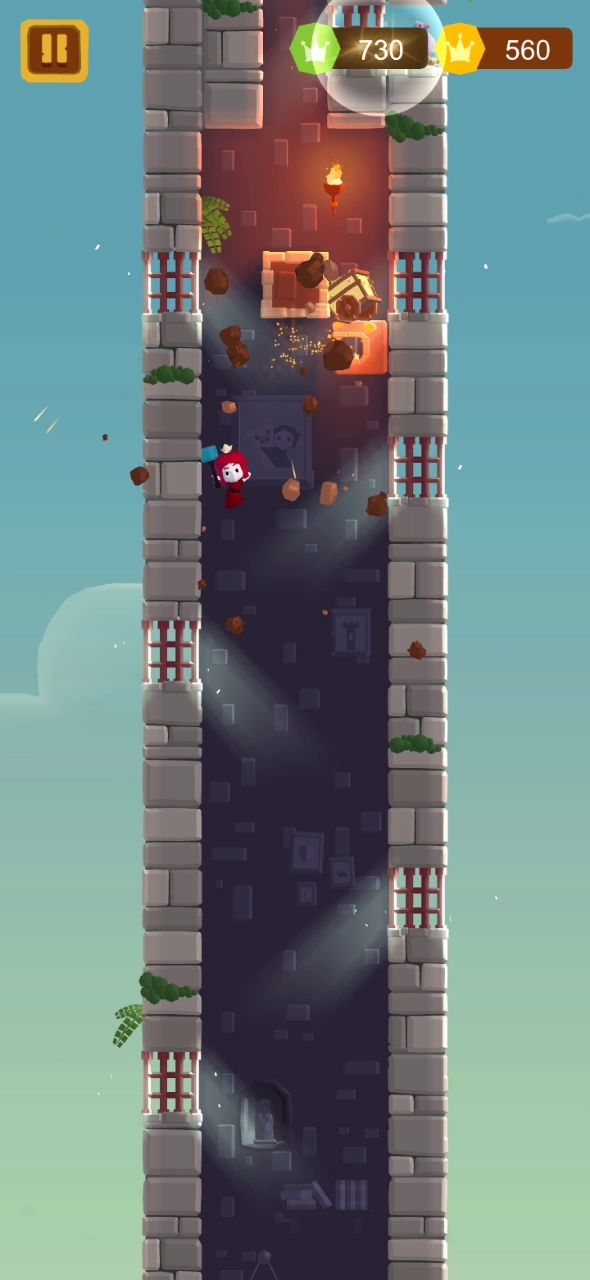 被困的公主,在等待飞马而来的王子?不,这次,王子已经被龙吃掉了...... 道路被泥土阻隔了,敲穿它。充满尖刺的陷阱出现了,敲平它。接过王子铁锤的公主,哐啷哐啷下 100 层吧!