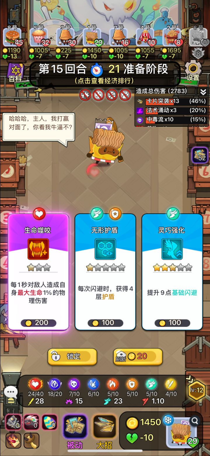 首先声明下,这个攻略不是给喜欢打人机的兄弟们看的,是给喜欢与其他人对抗的兄弟们看的~与人对抗和人机是不一样的,人机:由于刚开服时设定的13波人机开始出橙的机制遭到广大玩家的抗议,后续版本推后数波出橙(具体16还是20忘记了,好久没打人机了),因此人机的节奏比较慢前中期压力较小,你可以选择经济、事件贪一点以后期为主,也可以选择连胜拉经济,甚至你可以连败一波流(不推荐,改版后回合间隔变短了操作来不