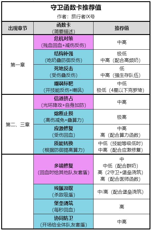 云图的函数系统虽然现在离“策略性丰富”还差点距离,但选对正确的函数对队伍的强度影响还是非常大的。本篇将分析云图中的守卫函数效果强度和推荐程度。但因为测试量还不是太大,推荐值仅供参考。