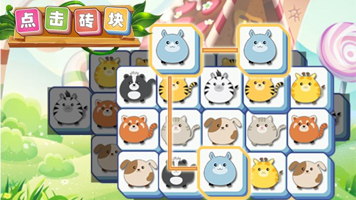 点击游戏区域的宠物方块,点击的方块将飞入下方存放栏,存放栏有三个相同的方块将会被消除。