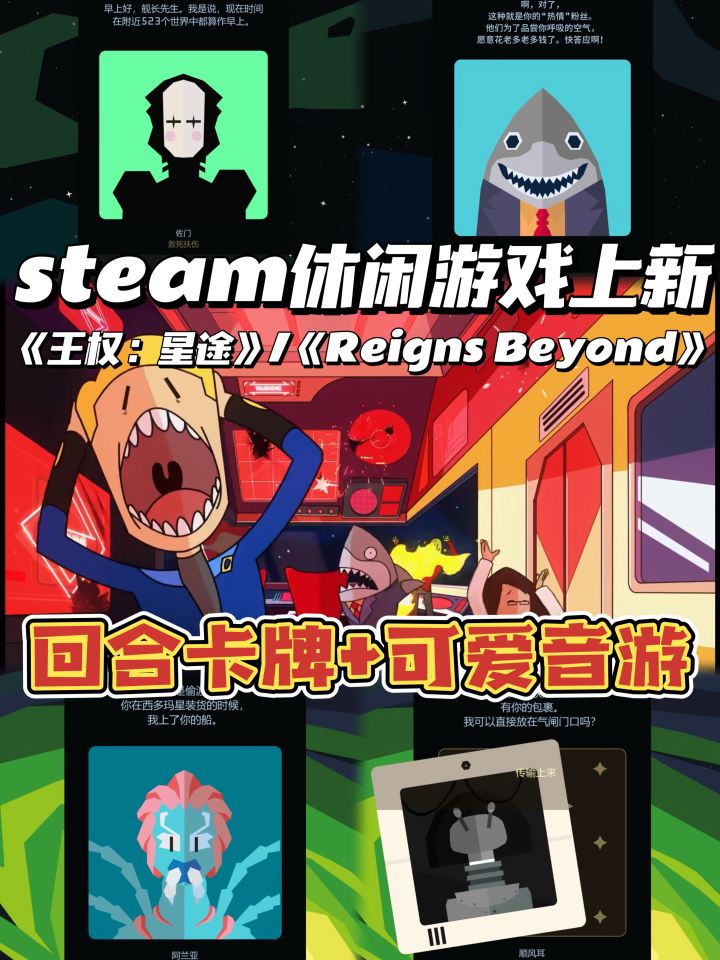 ✅游戏名:《王权:星途》/《Reigns Beyond》.✅平台:Steam|Switch.✅游戏时间:3小时左右.✅游戏类型:卡牌游戏|选择取向|休闲可爱. ✨《王权》系列蕞新巨作《王权:星途》闪耀登场啦!玩了一小时超级上头,每个卡通人物都好可爱好有梗!在宇宙中体验了各种花式s法,根本停不下来!🤣.🪐这次的新作不仅延续了左滑右滑的玩法,还加入了音游的要素,玩家将带领一支跨星系