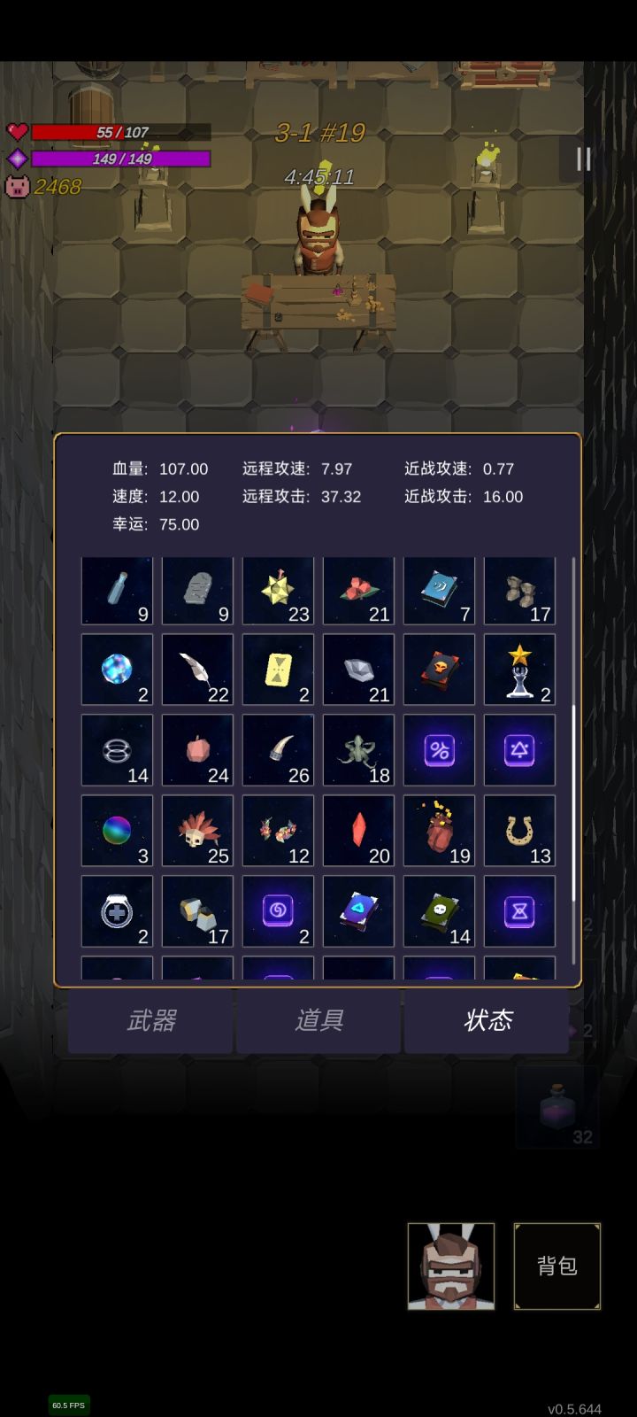 5个小时19周目,简单说一下,这个游戏每过一个周目自身的属性想要成长的话非常非常难,像是远程攻速和远程伤害。需要用大量的加伤害的道具才能提升零点几,但是移动速度不管怎么加,他的上限都是12.00。如果你期间选了一些减速度减移动速度加攻击伤害的这些道具,他不会剪你面板上的,所以我感觉啊,他这个速度会溢出一个阈值。导致你买那些减速度加伤害的道具,他不会直接从你面板上减少。关于道具的话,光之弓肯定是要的