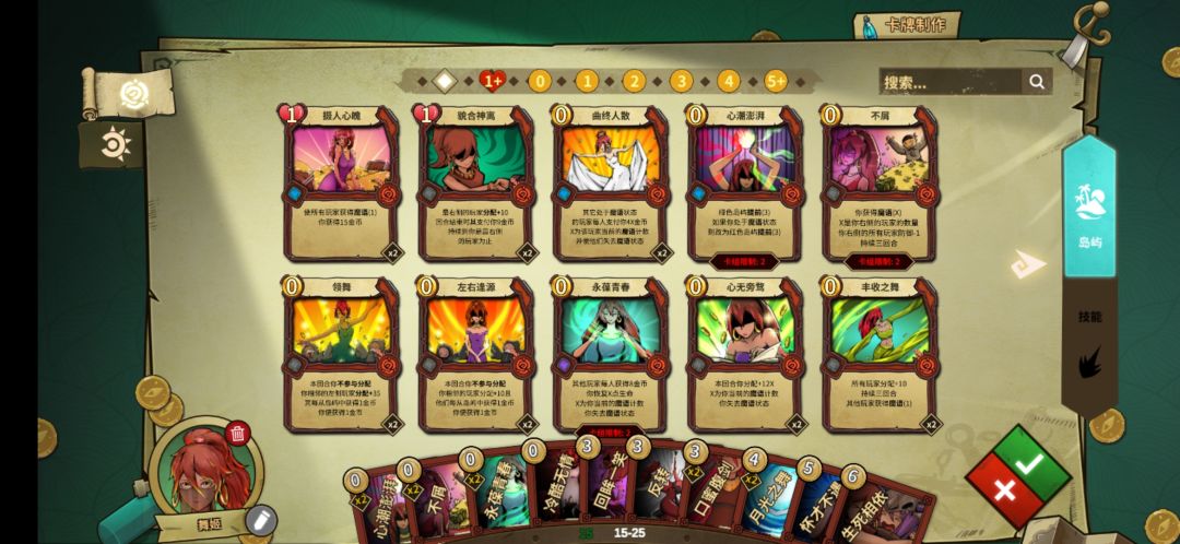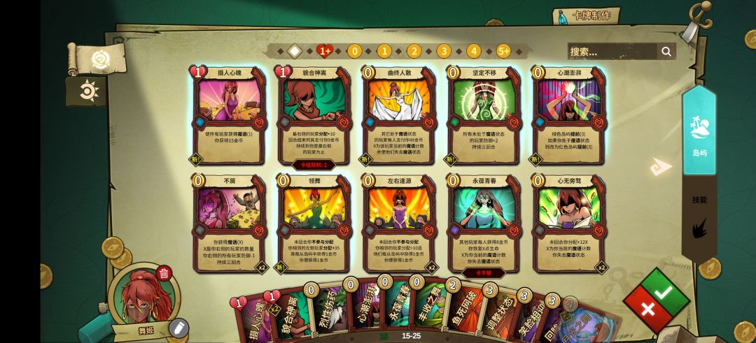 主要思路就是通过魔语之间的转化以及改变特定岛屿的顺序把队友全部抬走,岛屿尽量选红岛(舞女的生存能力还是挺强的),绿道选能均分的(防止队友返回捞钱) 强不强不好说,但绝对的快乐