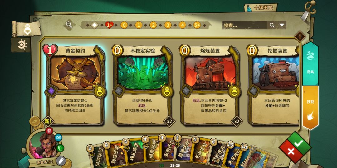 玩了几天,游戏很有趣,胜率也不错,现贡献下我的炼金卡组 deckc-AAECz9JPDwMLCxcXJCQlJSc2ObgBuQGsAgoDAw4TGz9bW2tr 优点:1.不吃岛,适合懒人,不用费心纠结是红黑绿岛,完全不靠分配,全部自产金币,专注产钱100年。 2.强化生存,基本全程都带着持续3回合的盾,再加上有持续3回合的回血茶,让你能比其他人坚持时间更久,活到最后就是胜利。✌ 缺点:1.输