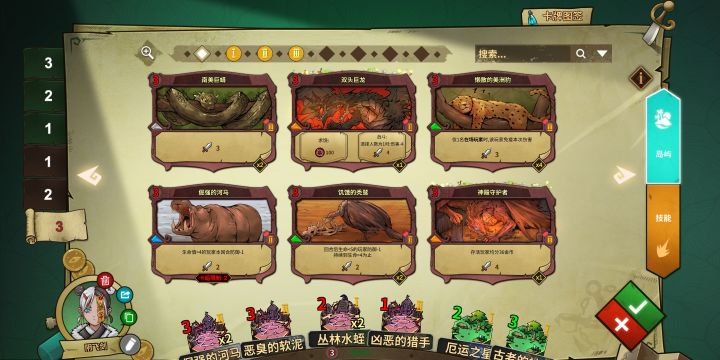 职业特色巫医的职业特色就是锁血技能与回血偷钱,这也是巫医的卡组思路,比如一下代表卡。在开始卡组介绍之前,我想介绍一下通用的技巧。岛屿攻略冒险公社危险的岛屿无非就是高攻与负面buff绿,这就要求我们必须要记住我们每巡的最高红的攻击点数,结合自身状态与罗盘预测,计算自己的血量,避免暴毙,比如说,一巡的最高点数红是三攻白狼王,二巡的最高点数红是神秘领域与宝藏守卫者,宝藏守卫者固定三攻而神秘领域则