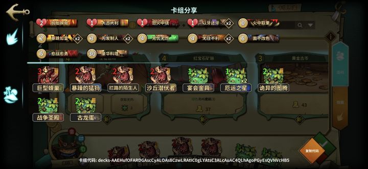 昨天群里说就老王用爱发电做攻略,那我这不是给老王分担压力来了。玩舞姬很需要玩家会看岛,但是我这套是给萌新玩的,并不是很需要操作,比较无脑可以苟到分,我本人就是玩这套,因为我也是萌新。先看舞姬特质这套牌的思路是共舞赚钱,魔语过岛,在绿岛魔语攻击自己时靠防御抵消。下面看key牌关键收益卡,赚钱就靠它了,注意有一层魔语,两张沉鱼落雁的共舞效果不能叠加。因为沉鱼落雁不参与分配的效果,所以配合如